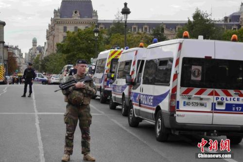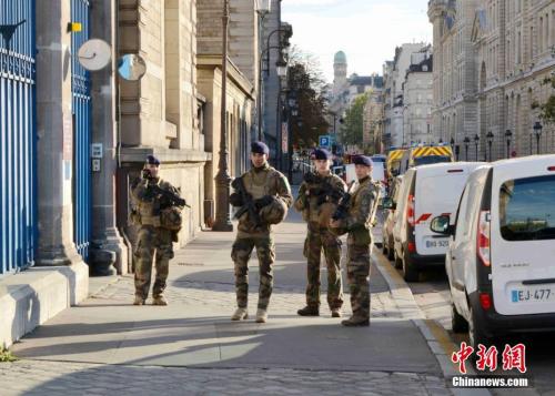 當?shù)貢r間10月3日,巴黎警察總部遭遇襲擊,4人遇害。事發(fā)后,巴黎警察總部外戒備森嚴,法國軍人持槍巡邏。中新社記者 李洋 攝