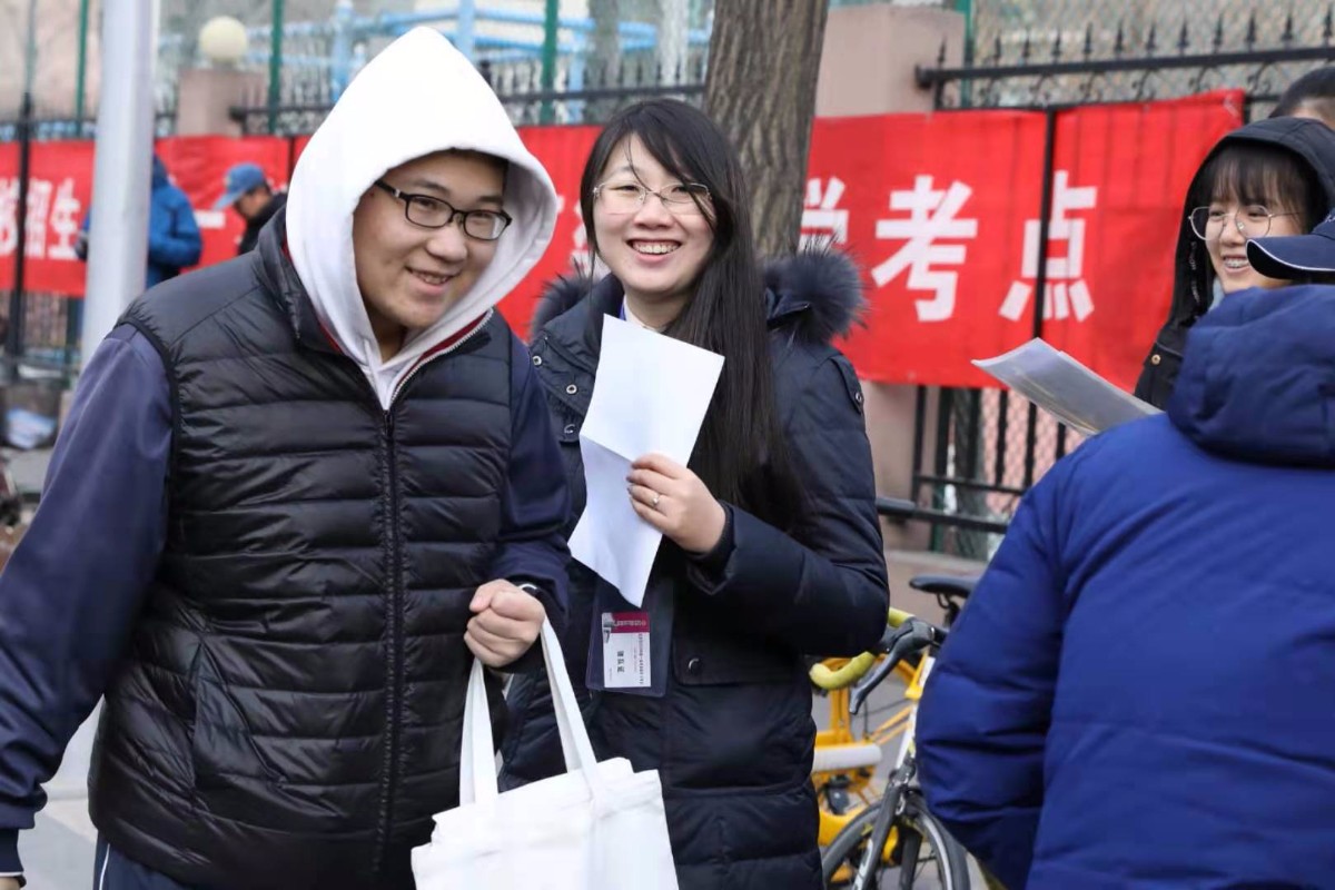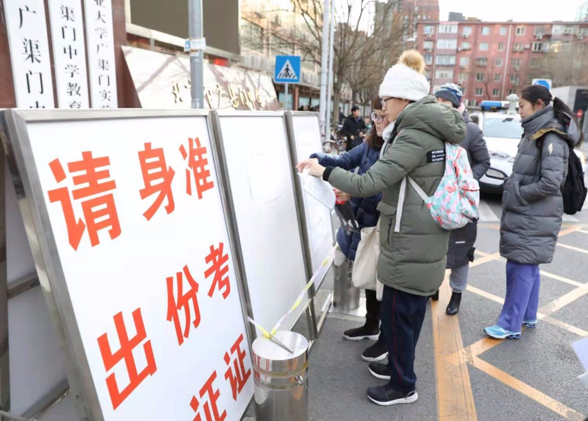 “我們早晨6點(diǎn)40分就從學(xué)校集合出發(fā)了”,一位穿著北師大附中校服的女生告訴記者。“聽說這次聽力考試有三套‘卷子’,我們在學(xué)校做了許多有針對性的聽力練習(xí)”,女生表示自己毫不緊張,臨進(jìn)考場前還比出了“勝利”的手勢。