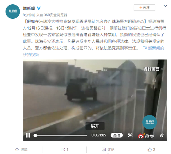【假如在港珠澳大橋檢查站發(fā)現(xiàn)香港暴徒怎么辦?珠海警方明確表態(tài)】據(jù)珠海警方12月16日通報,13日15時許,邊檢民警在對一輛前往澳門的穿梭巴士進行例行檢查中發(fā)現(xiàn)一名乘客疑似被通緝香港籍嫌疑人鐘某明。執(zhí)勤的民警也已經(jīng)確認了此事。珠海公安還表示,凡是違反中華人民共和國各項法律、法規(guī)和相關規(guī)定的人員,警方都會依法處理,構成犯罪的,將依法追究其刑事責任。