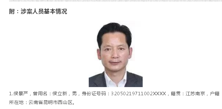 但在今年6月,侯景嚴(yán)上了云南警方的通告名單。6月24日,昆明市公安局掃黑辦發(fā)布《關(guān)于公開征集侯景嚴(yán)、簡金龍等人涉嫌違法犯罪線索的通告》。